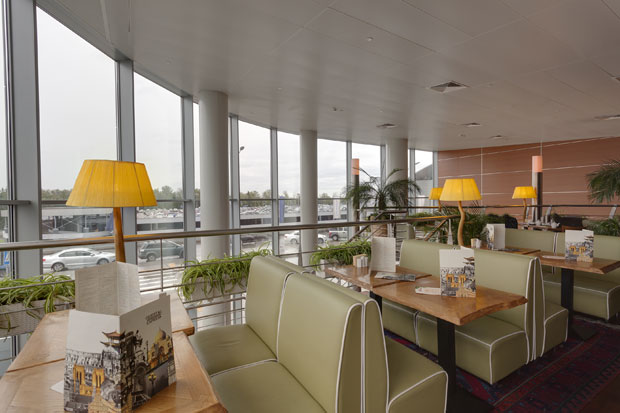 Здесь есть и русские блюда – блины (в том числе с черной икрой), столичный салат с куриной грудкой и лососевой икрой, форшмак, суп с курицей и домашней лапшой, борщ, котлеты из индейки, а также люля-кебабы и шашлыки, которые готовятся на мангале. «Ориентал экспресс» – единственный в «Шереметьево» ресторан, где готовят и подают блюда, приготовленные на углях. Стоит оценить шашлык из свиной шейки, люля-кебаб, каре ягненка, «чикен тику» и стейки из мраморной говядины, а также морепродукты.