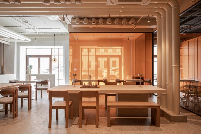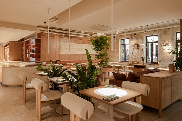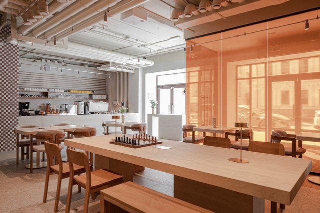 Светлое пространство с видом на тихие улочки Замоскворечья удивляет масштабом и функциональностью. Здесь можно освоить новую профессию с экспертами ресторанного бизнеса и пройти стажировку, позавтракать рано утром или зайти на обед, приобрести книгу и прочесть ее за чашкой отличного кофе. Все, что нужно для тех, кто живет в ритме большого города и стремится быть на шаг впереди, теперь