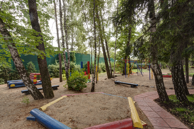 На первом этаже находится основной зал с уютными диванами. На втором этаже расположены два банкетных зала - на 25 и 70 мест; на третьем этаже – бильярдная комната. Летняя веранда с беседками находится практически в лесу - в густой тени деревьев. Для детей предусмотрена детская площадка на свежем воздухе со всевозможными горками, турниками и качелями. По выходным с 14:00 до 21:00 с ребятами играет клоун.